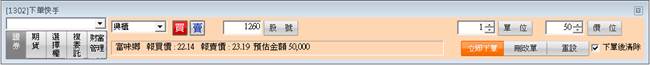 1.[1302]下單快手、[1301]下單中心興櫃及興櫃零股下單超過「控管基準價」增加「警示訊息」。