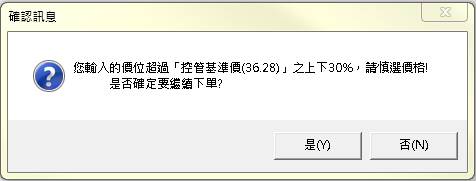1.興櫃股票及開放式基金受益憑證部分:委託價格超過「控管基準價」之上下30%者。