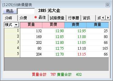 2.[1205]分時價量表-「最佳」於試撮時段提供試撮資訊。